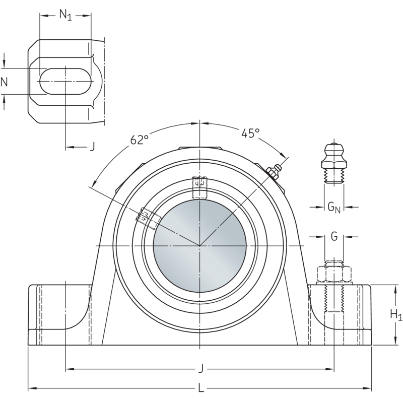 | Housing foot height | H1 | 57.15 | mm |